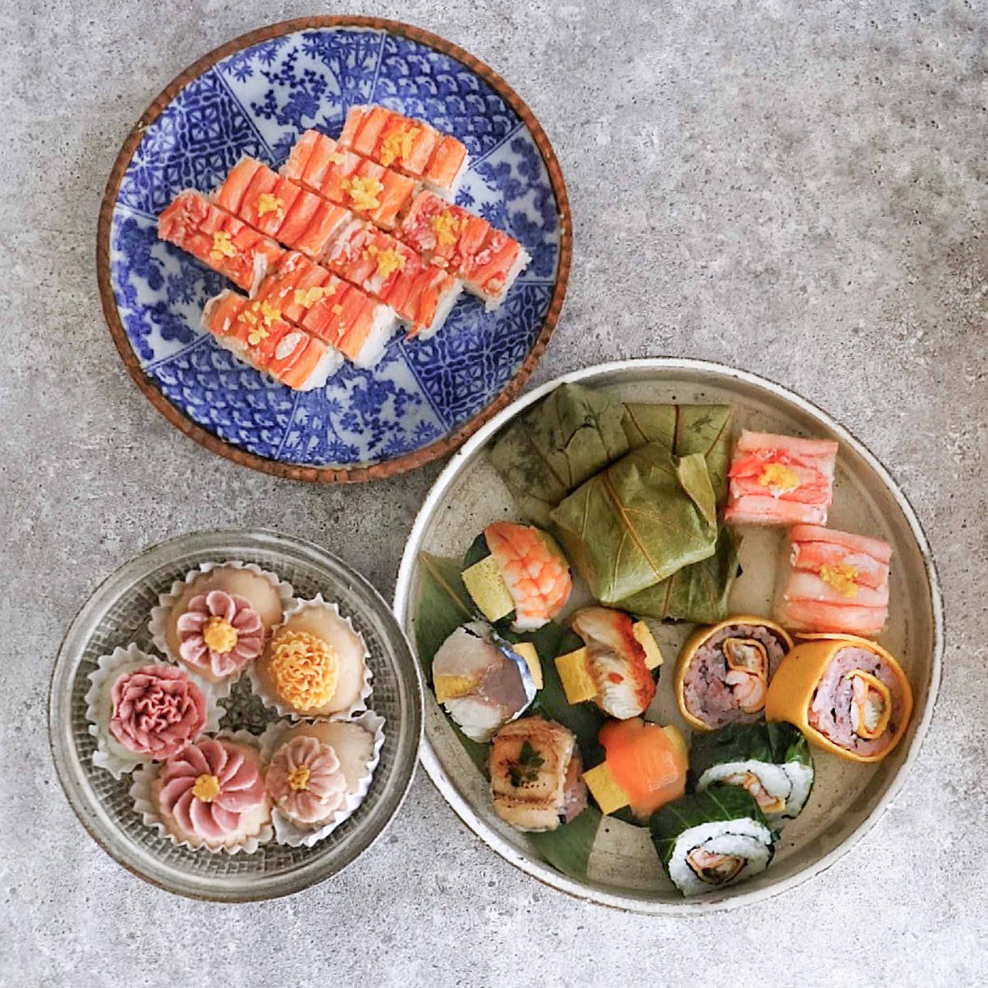 「手鞠わさび葉寿し」「紅ずわいがにの押し寿司」「お花のおはぎうめもりの人気商品を一度に楽しめる限定セットです。